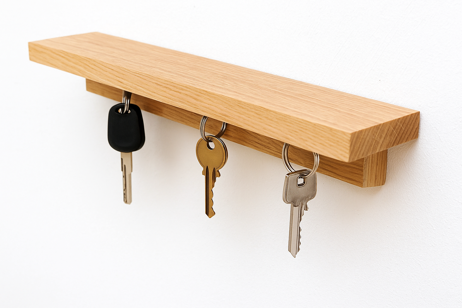 Αυτή η χειροποίητη μαγνητική κλειδοθήκη τοίχου από φυσικό ξύλο είναι η ιδανική λύση για να κρατάτε τα κλειδιά σας οργανωμένα με στυλ. Κρύβει μαγνήτες εσωτερικά, προσφέροντας «αόρατη» συγκράτηση που δίνει την αίσθηση ότι τα κλειδιά αιωρούνται!