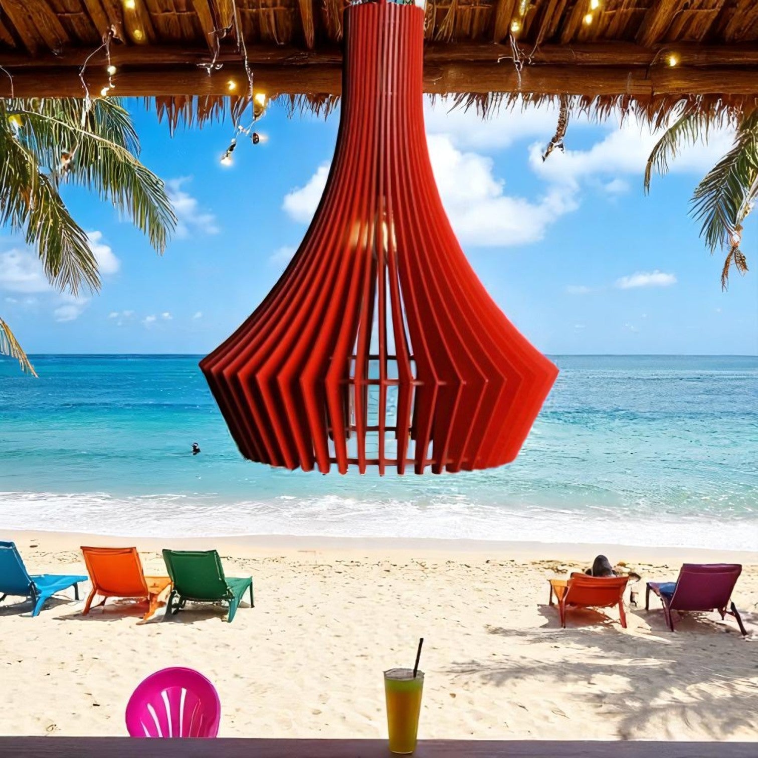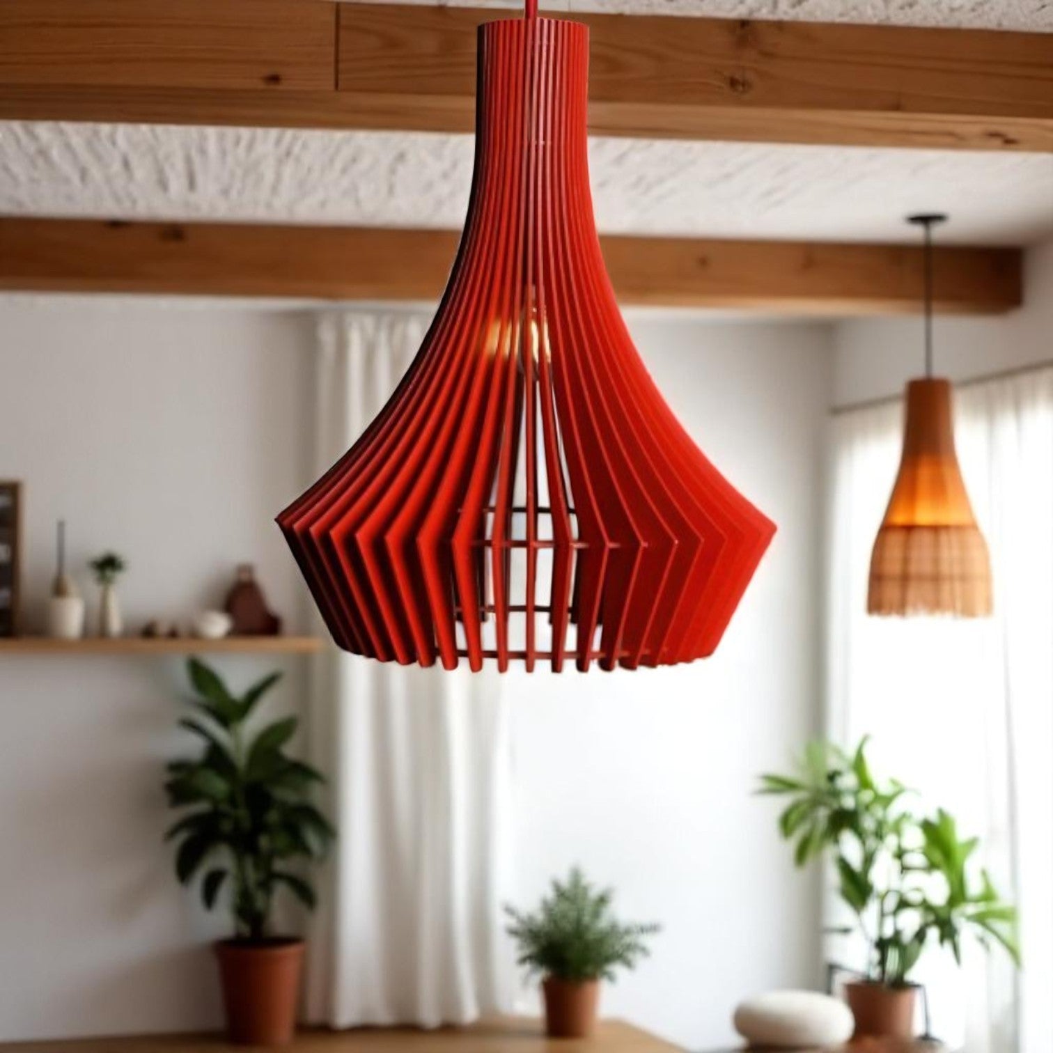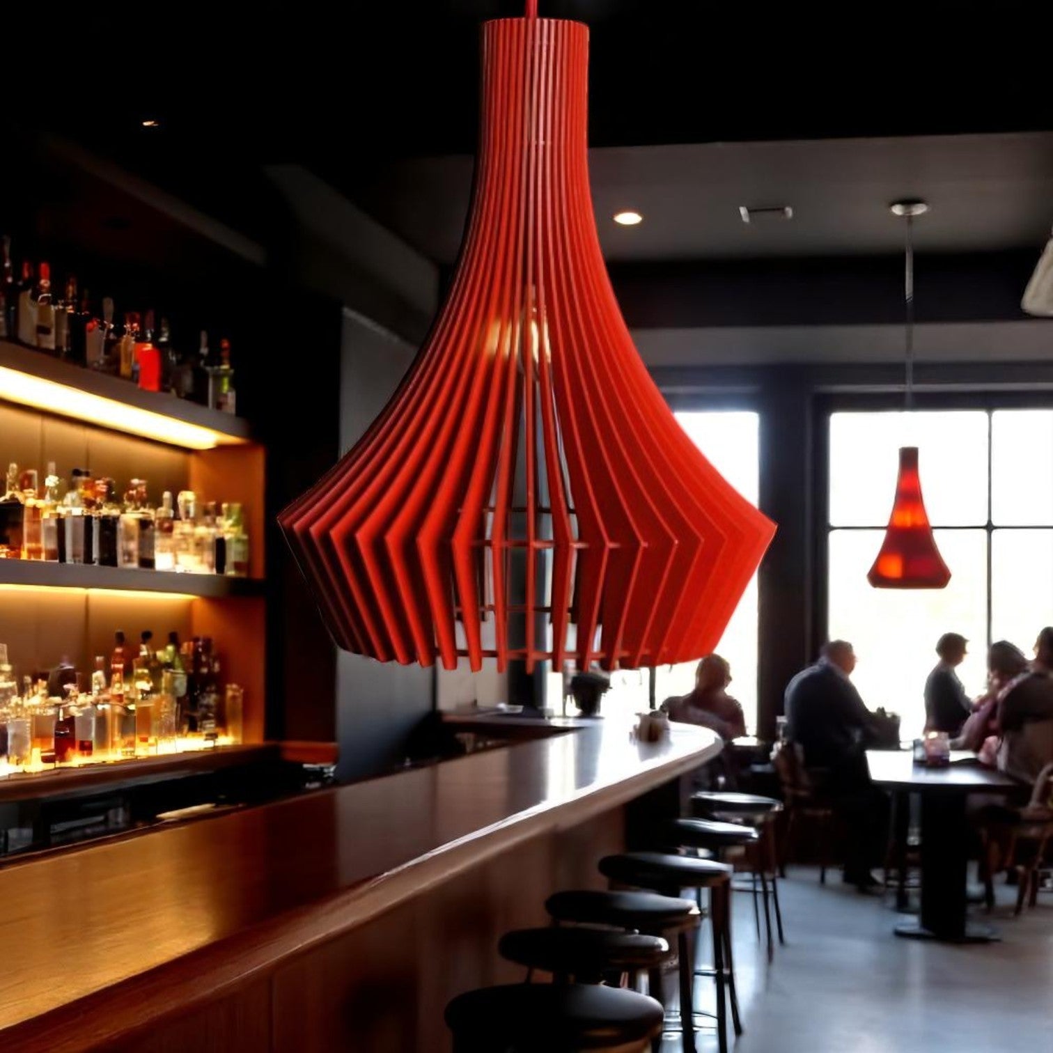 Αναβαθμίστε τον χώρο σας με αυτό το εντυπωσιακό ξύλινο κρεμαστό φωτιστικό, εμπνευσμένο από σύγχρονη αισθητική. Κατασκευασμένο και κομμένο με ακρίβεια cnc, δημιουργεί ένα ζεστό και ατμοσφαιρικό φως, ιδανικό για μπαρ, τραπεζαρίες, σαλόνια ή επαγγελματικούς χώρους.