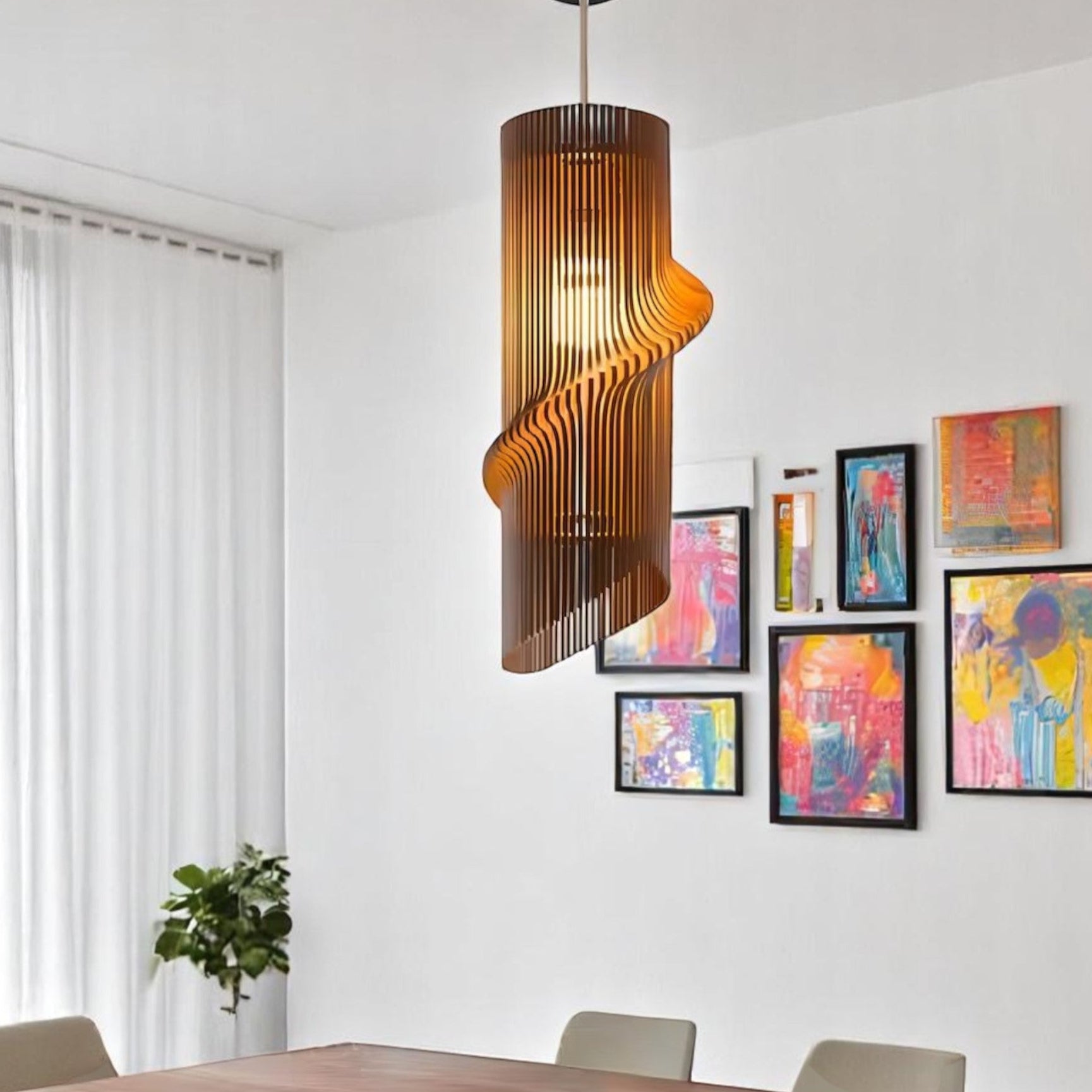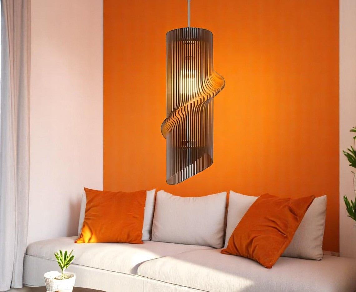 Εντυπωσιακό κρεμαστό φωτιστικό με σπιράλ σχεδιασμό , ιδανικό για τραπεζαρία, σαλόνι ή επαγγελματικό χώρο. Το μοναδικό παιχνίδι φωτός και σκιάς που δημιουργεί, δίνει κομψότητα και ζεστασιά στο περιβάλλον. Κατασκευασμένο στο χέρι με έμφαση στη λεπτομέρεια, αποτελεί μια σύγχρονη και διαχρονική πρόταση διακόσμησης.