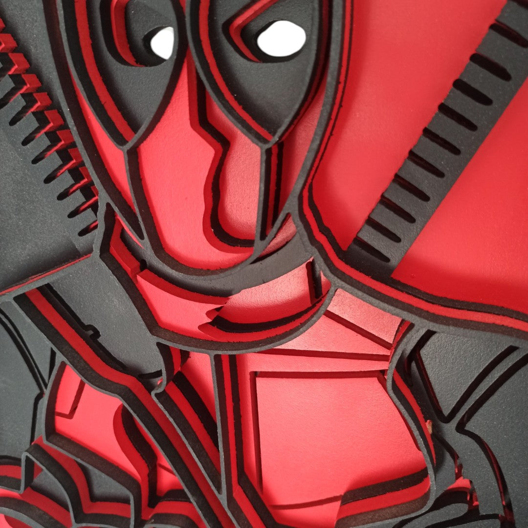 Αναδείξτε την αγάπη σας για τους σούπερ ήρωες με αυτό το εντυπωσιακό ξύλινο 3D κάδρο του Deadpool. Κατασκευασμένο με απόλυτη λεπτομέρεια από επεξεργασμένο MDF και βαμμένο στο χέρι με ακρυλικά χρώματα, αποτελεί μοναδική πρόταση για διακόσμηση σε παιδικά δωμάτια, γραφεία ή κάθε χώρο που χρειάζεται χαρακτήρα και χιούμορ.