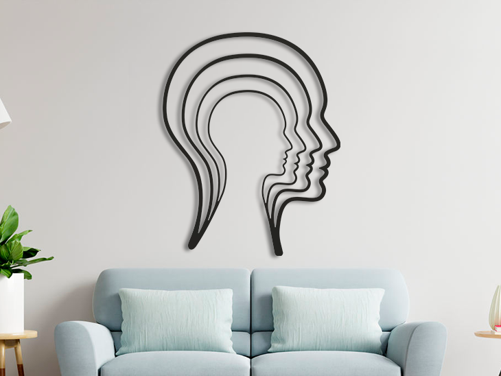 Αυτό το minimal διακοσμητικό απεικονίζει διαδοχικά προφίλ που φωλιάζουν το ένα μέσα στο άλλο, συμβολίζοντας τα επίπεδα της προσωπικότητας, την ανάπτυξη από την παιδική ηλικία στην ωριμότητα ή τις διαφορετικές σκέψεις που μας καθορίζουν. Είναι ένα κομμάτι με ισχυρό ψυχολογικό και φιλοσοφικό υπόβαθρο, δοσμένο με απόλυτα σύγχρονο στυλ.