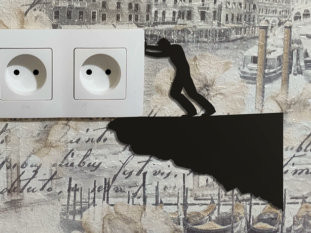 Αυτό το μοναδικό διακοσμητικό τοίχου δεν είναι απλά ένα έργο τέχνης, αλλά μια έξυπνη παρέμβαση στον χώρο. Απεικονίζει τη σιλουέτα ενός ανθρώπου που μοιάζει να σπρώχνει με όλη του τη δύναμη την πρίζα ή τον διακόπτη σας, δημιουργώντας μια διασκεδαστική οπτική ψευδαίσθηση που κλέβει τις εντυπώσεις.